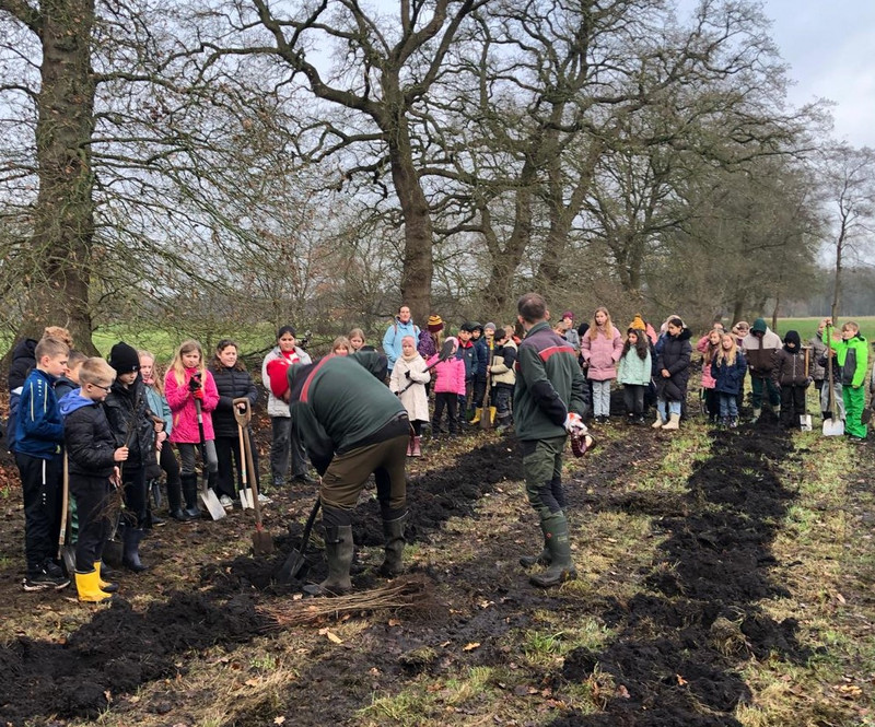 Eine rund ein Hektar große Fläche an der 1. Südwieke verwandelte sich am Donnerstag in ein lebendiges Klassenzimmer unter freiem Himmel. Etwa 65 Schülerinnen und Schüler der vierten Klassen der Grundschule Ostrhauderfehn beteiligten sich gemeinsam mit ihren Lehrkräften an einer groß angelegten Pflanzaktion. Insgesamt fanden rund 3000 junge Bäume und Sträucher ihren Platz – darunter vor allem Stieleichen und Rotbuchen, die künftig das Landschaftsbild prägen werden.