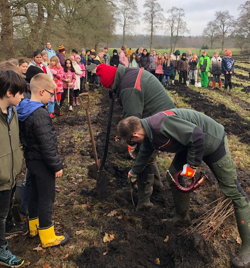 Nach einem herzlichen Grußwort des Bürgermeisters Günter Harders erhielten die Kinder eine fachkundige Einführung in die Pflanzkunde durch Bezirksförster Erich Delfs. Mit großem Eifer griffen die Schülerinnen und Schüler anschließend selbst zum Spaten und setzten die ersten Bäume in die Erde. Zwischendurch stärkten sie sich bei einem gemeinsamen Frühstück mit Stutenkerl und Kakao, bevor es wieder an die Arbeit ging.