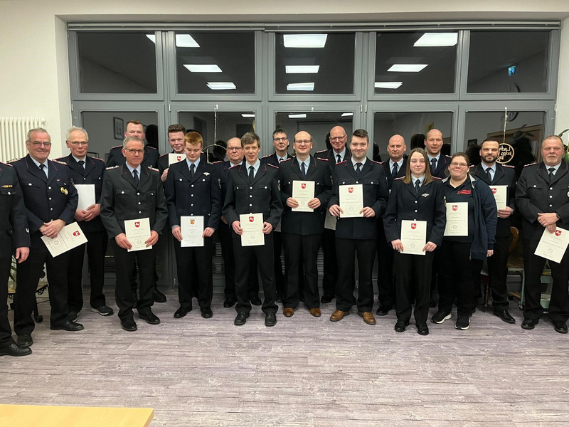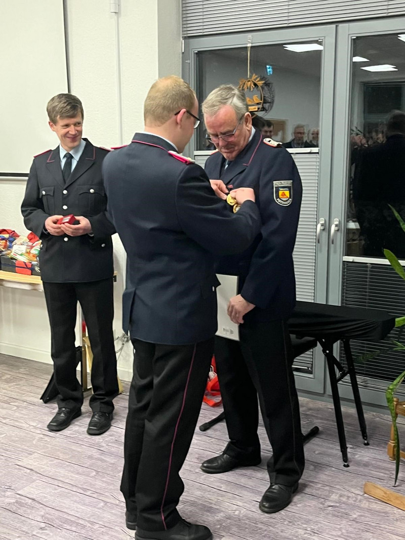 Mit der Hochwassermedaille wurden folgende Kameraden ausgezeichnet: Franko Engels, Lena Engels, Torsten Engels, Dirk Gruben (abwesend), Andre Grünefeld, Udo Haskamp (abwesend), Walter Hemmen, Johann Heselmeyer, Lisa Heselmeyer, Arne Janssen, Thomas Janssen, Carsten Jelden, Thorsten Jelden (abwesend), Jann Kleemann, Gerrit Kleemann, Ewald Meyer, Hanno Meyer, Thorben Oltmanns, Marten Scheper, Markus Schnau und Jürgen Specht. Die Auszeichnung würdigt ihren besonderen Einsatz während der Hochwasserlage.