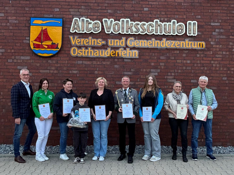 Die Geehrten engagieren sich in ganz unterschiedlichen Bereichen – von Sport- und Kulturvereinen über soziale Initiativen bis hin zu kirchlichen und gemeinnützigen Einrichtungen. Ihr langjähriger Einsatz zeigt, wie vielfältig und lebendig das Ehrenamt in Ostrhauderfehn ist.